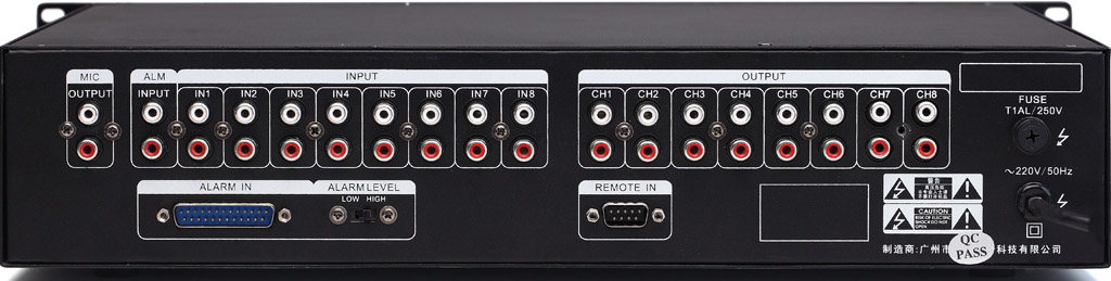信号矩陣功能(néng)(1路警急輸入、1路遙控尋呼輸入、8路普通輸入,8路輸出);
